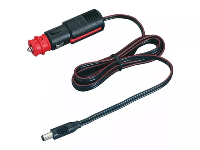 Sicherheits-Universalstecker 8 A konfektioniert mit Kabel 2x 0,75 mm² und mit Hohlgerätestecker 2,5 x 5,5 mm, gerade Ausführung, Schaftlänge 9,5mm.