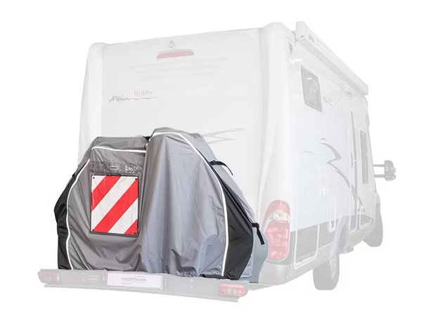 Die HINDERMANN Fahrradschutzhülle PROFESSIONAL wurde zum Schutz von bis zu 2 Fahrrädern entwickelt, die auf einem Heckbühnenträger am Reisemobil transportiert werden können.