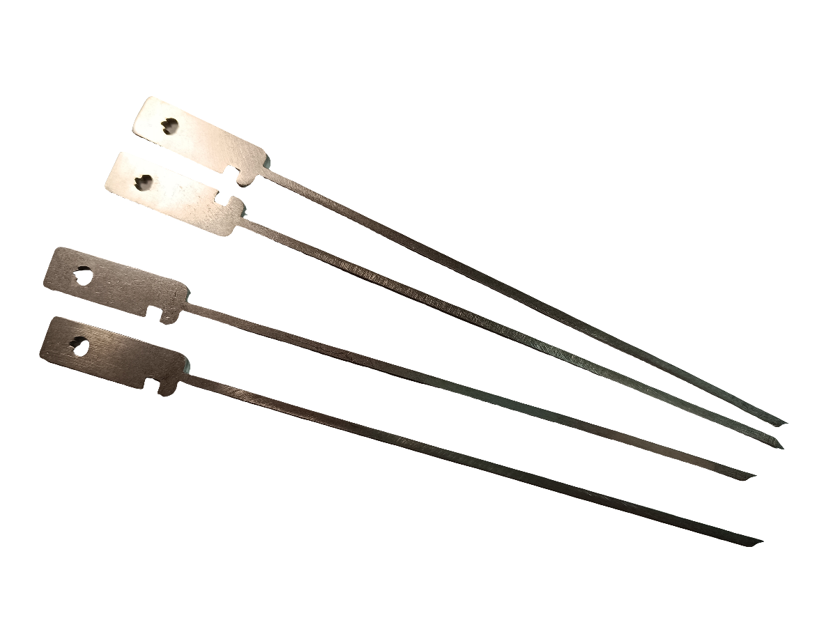 Edelstahl grillspieße fixierbar in vier verschiedenen Winkeln und Positionen.