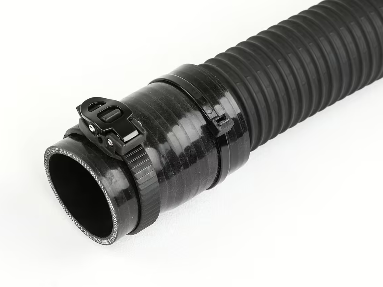 Der Adapter ist für eine Warmluftleitung. Zum einen ist es sicherer für Mensch, Equipment oder Auto, weil Kanten, Fransen und Drahtenden des abgeschnittenen Rohres unter der Silikonhülle verschwinden und so keine Gelegenheit zum Kratzen, Piksen oder Reißen bekommen. Ein Ende des Silikon-Adapters wird mit einem der mitgelieferten Kabelbinder semi-permanent auf dem abgeschnittenen Rohr befestigt. Das andere Ende des Adapters kann dann mit der Ratschenschelle je nach Bedarf auf einem Anschluss oder einer Verlängerung festgezogen werden. Ohne die Ratsche ist der Silikonadapter, der das Rohr nur um 5 mm dicker macht, eine perfekte und ästhetisch ansprechende Endmanschette. Das Auge campt schließlich mit und wer will schon auf fransende Rohrenden schauen.