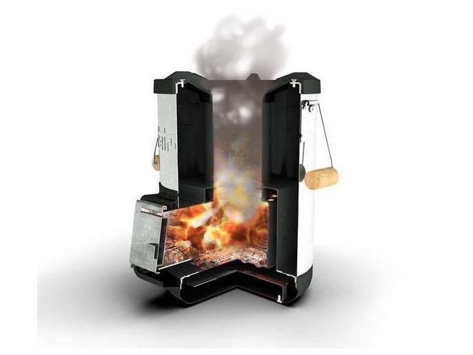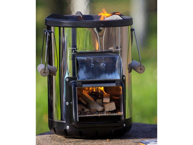 Dieser (nahezu) rauchfreie Ofen ist perfekt zum energiesparenden Kochen im Freien geeignet. Als Brennmaterial kannst Du einfach Tannenzapfen, fingerdicke Äste und Zweige, Kleinholz, Reisig, Stroh oder Baumrinde verwenden. Diese mobile Feuerstelle zeichnet sich durch eine effiziente Verbrennung bei geringem Verbrauch von Brennmaterial aus.